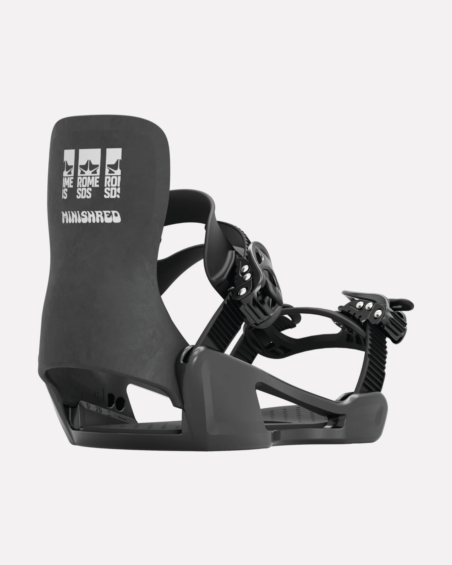 The MiniShred binding takes all the Rome know-how about making great bindings and pairs it down for the tiniest of riders. Featuring plush straps, a sturdy highback, adjustable sizing to grow with riders, and tool-free adjustable strap locations and highback positioning for daily adjustments, the MiniShred will take groms from day 1 to wherever the season takes them.