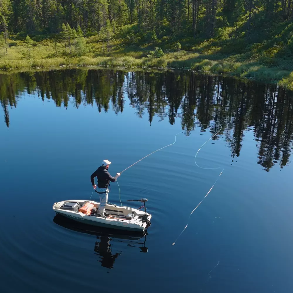 Le kayak de pêche Catch PWR 100 est conçu pour les pêcheurs plus expérimentés à la recherche d'une expérience de pêche inoubliable. Sa coque en tunnel offre une excellente stabilité, tandis que le fond plat vous donne l'équilibre nécessaire pour lancer votre ligne et remonter vos prises avec facilité. Vous apprécierez la polyvalence du siège Ergo360, qui repose sur des rails coulissants et peut pivoter à 360 degrés pour vous permettre d'ajuster votre position en fonction de vos besoins. Ce kayak ouvert est également doté d'un compartiment à pile de 20 cm (8 po), de compartiments de rangement latéraux, de quatre porte-cannes à pêche encastrés et d'œillets pour accessoires. Autant de caractéristiques que vous apprécierez de plus en plus à chaque sortie de pêche